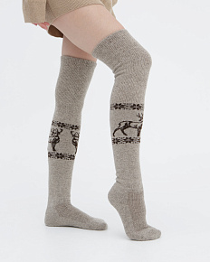 Теплые чулки из 100% шерсти с рисунком серые