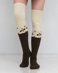 Теплые чулки из 100% шерсти с рисунком темно-коричневые