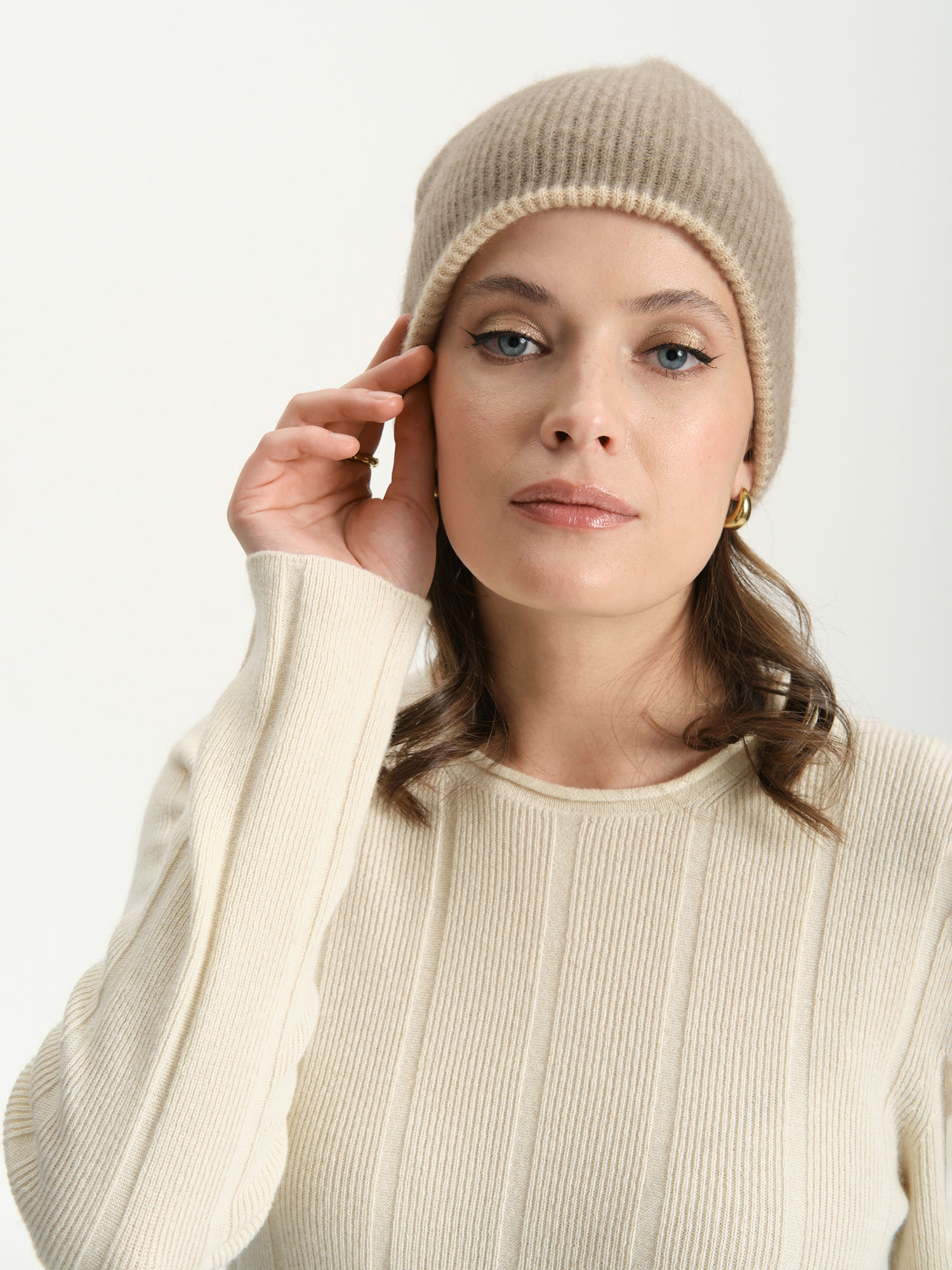 Шапка кашемировая двухсторонняя бежевая-капучино