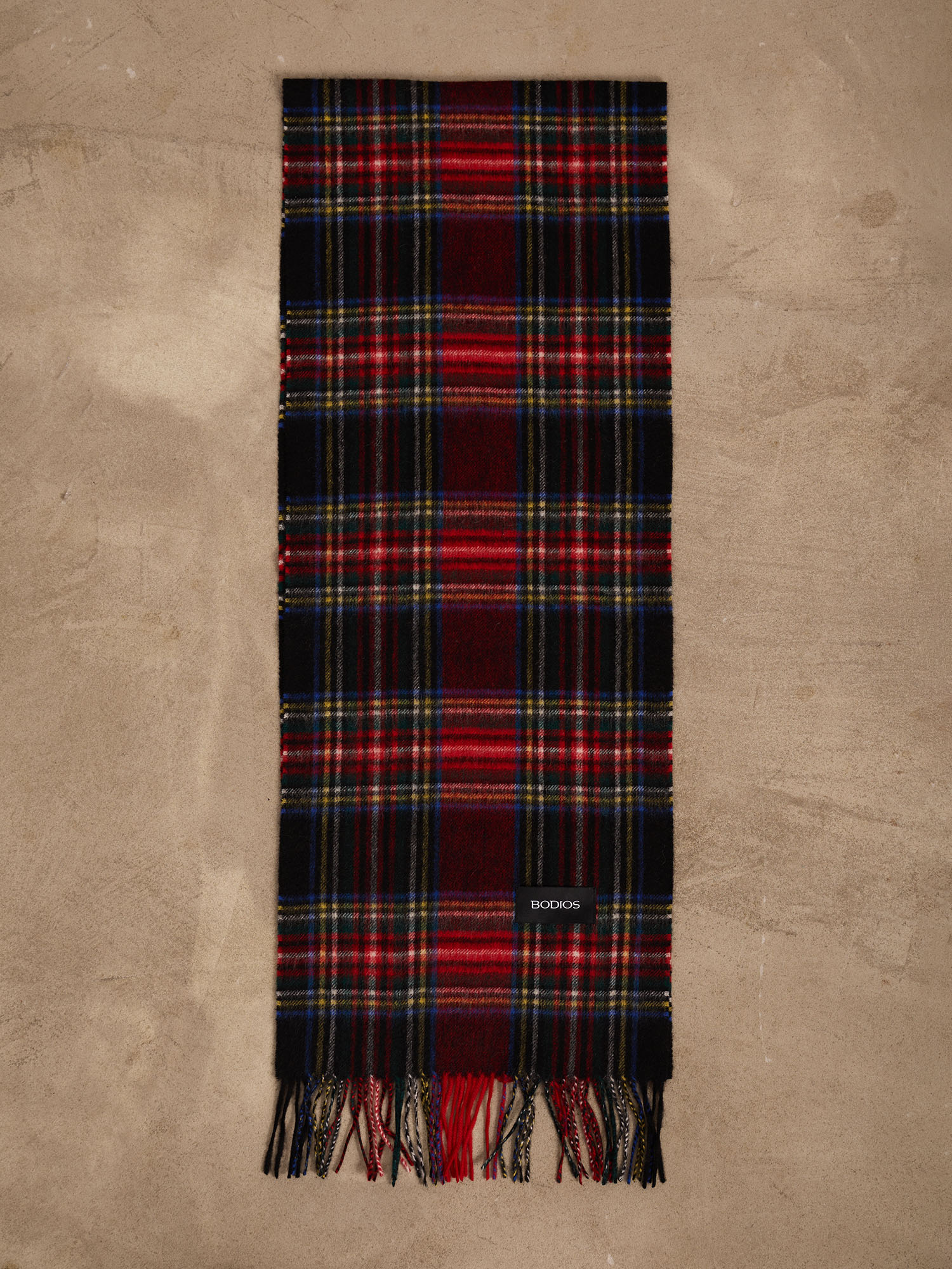 Классическая прямоугольная форма с аккуратной бахромой по краям. Традиционный клетчатый узор в стиле тартан придаёт изделию выразительность и делает его стильным акцентом гардероба.