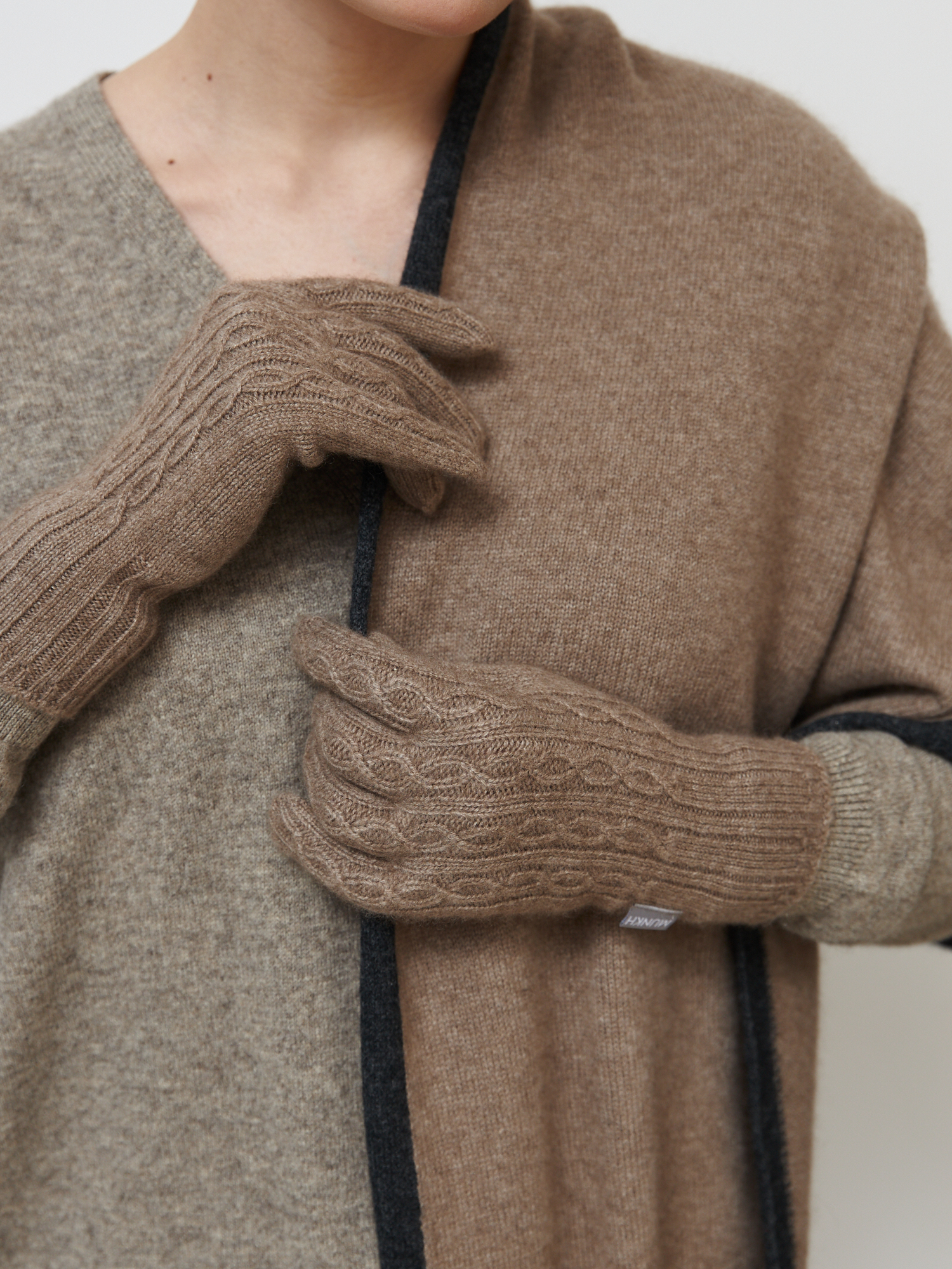 Перчатки выполнены из натурального кашемира — премиального материала с исключительной мягкостью и лёгкостью. Тонкое волокно эффективно удерживает тепло, оставаясь «дышащим» и гипоаллергенным. Кашемир обеспечивает высокий уровень комфорта и долговечности, оправдывая свою ценность