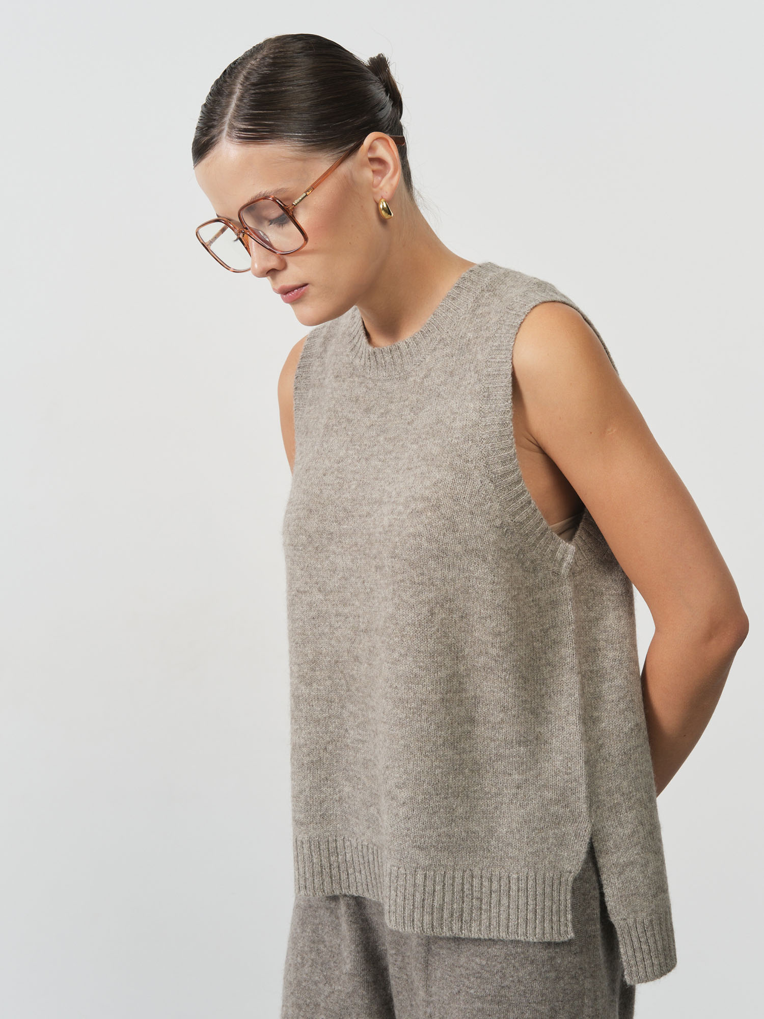 Модель выполнена без рукавов с круглой горловиной. Минималистичный крой подчёркивает современный стиль изделия и делает его удобным для сочетания с рубашками, водолазками или базовыми топами.