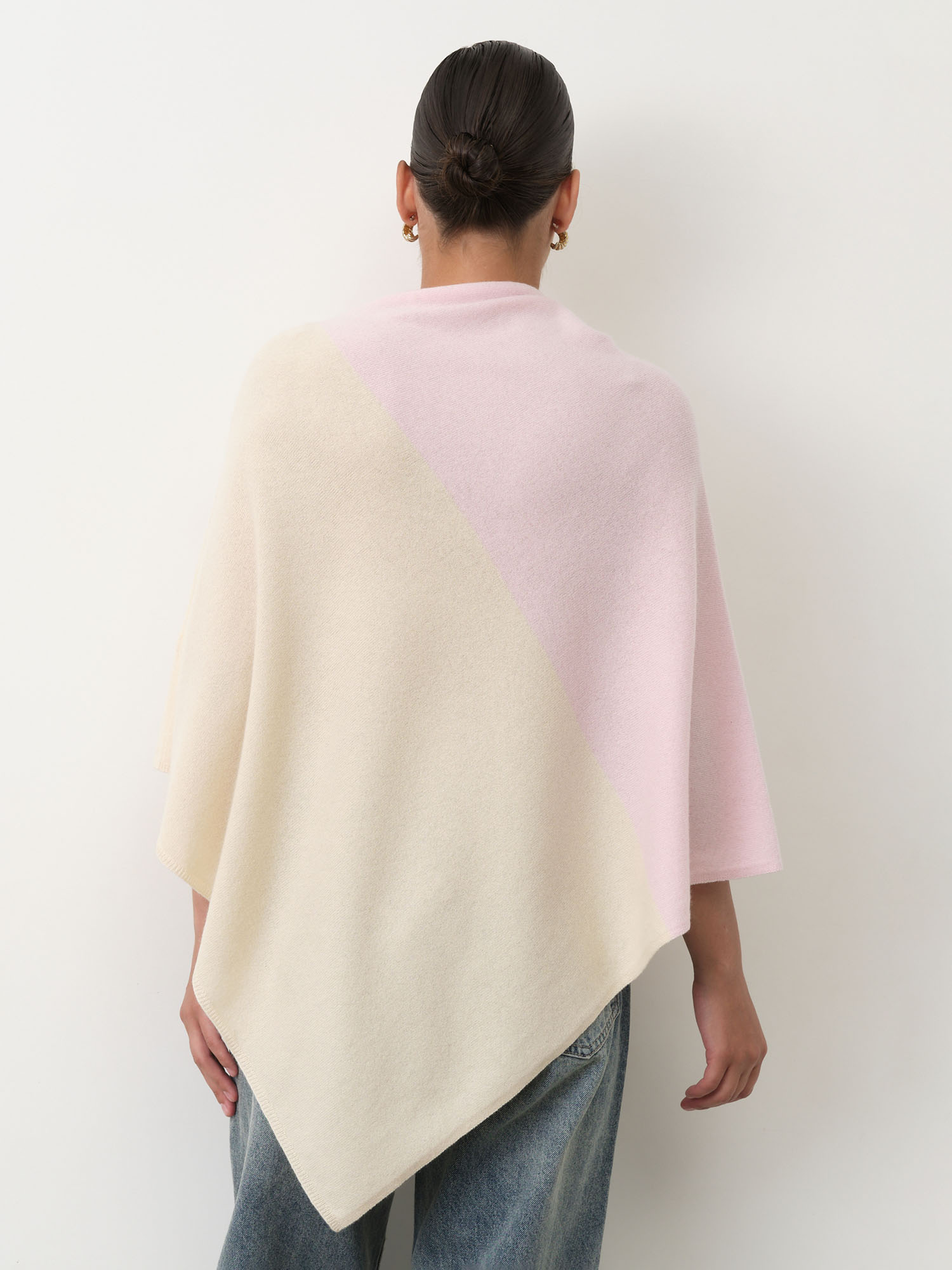 Обожаю это пончо: натуральная шерсть, лёгкость и невероятное тепло. Асимметрия смотрится стильно, а кремово-розовый тон добавляет нежность.