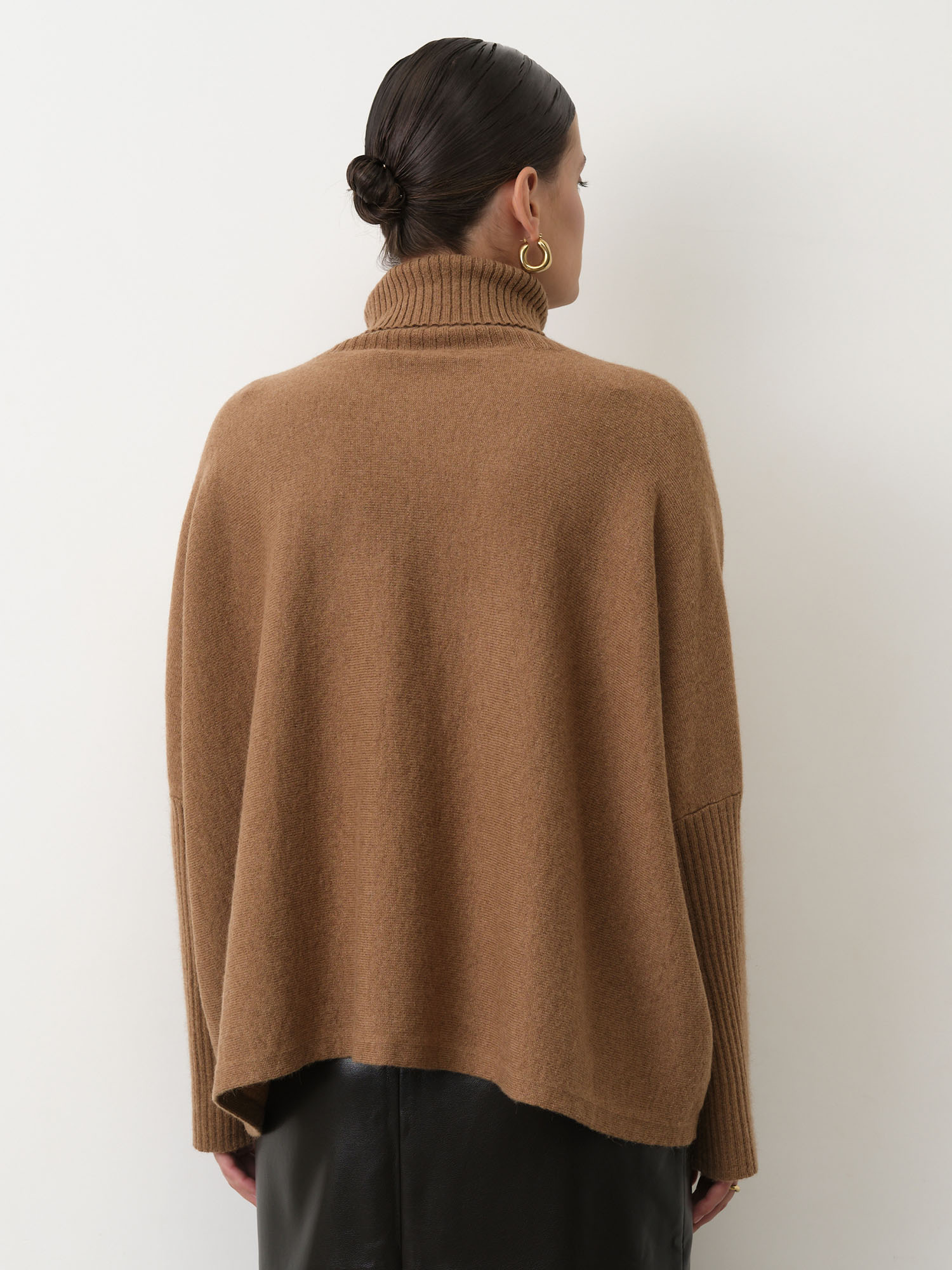 Свободный крой с эффектом oversize и спущенной линией плеча. Высокая горловина добавляет дополнительный комфорт и защиту от холода.