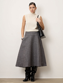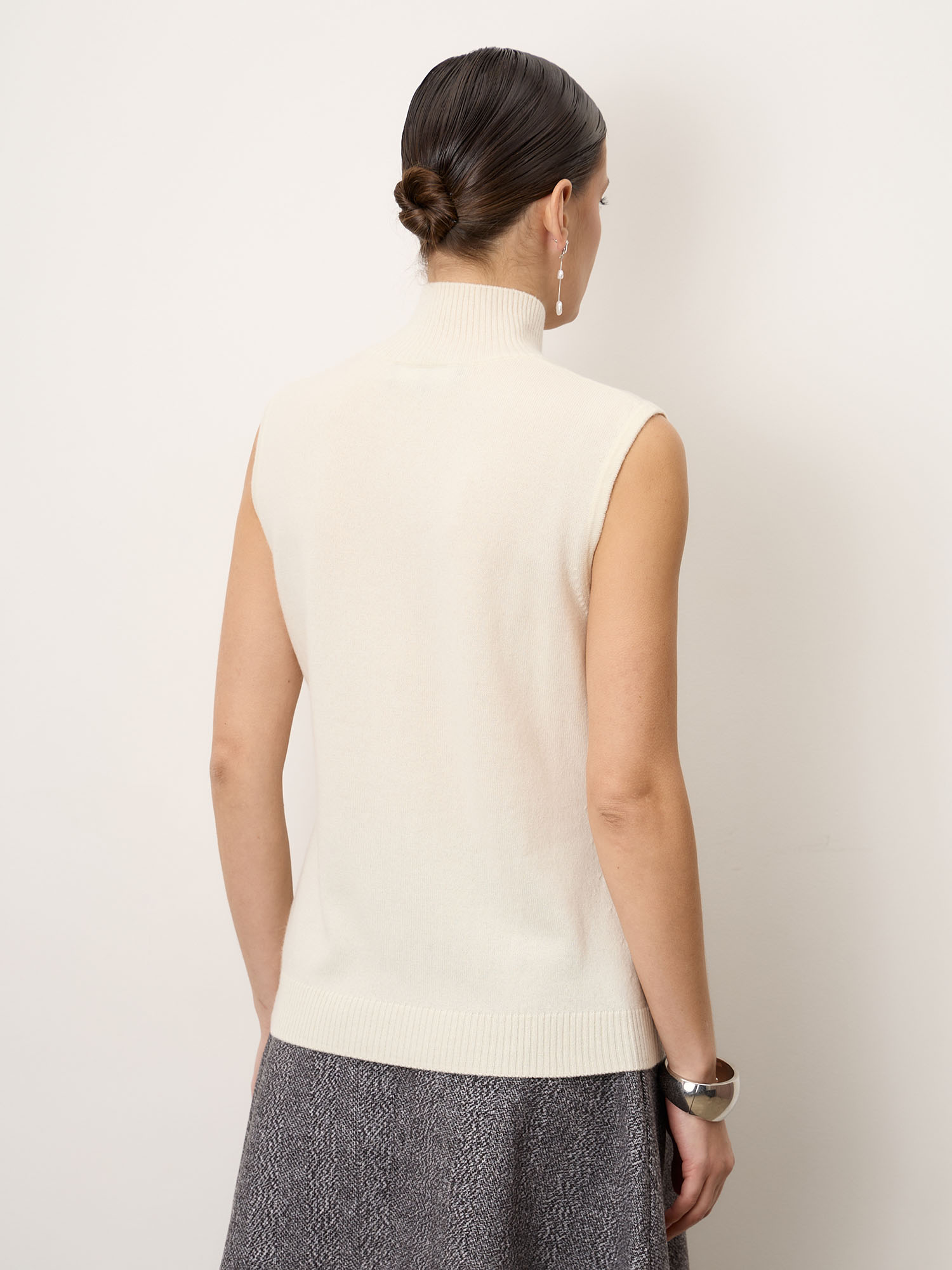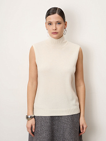 Прямой силуэт с высоким воротом и отсутствием рукавов. Лаконичный крой подчеркивает современный стиль и универсальность модели.
