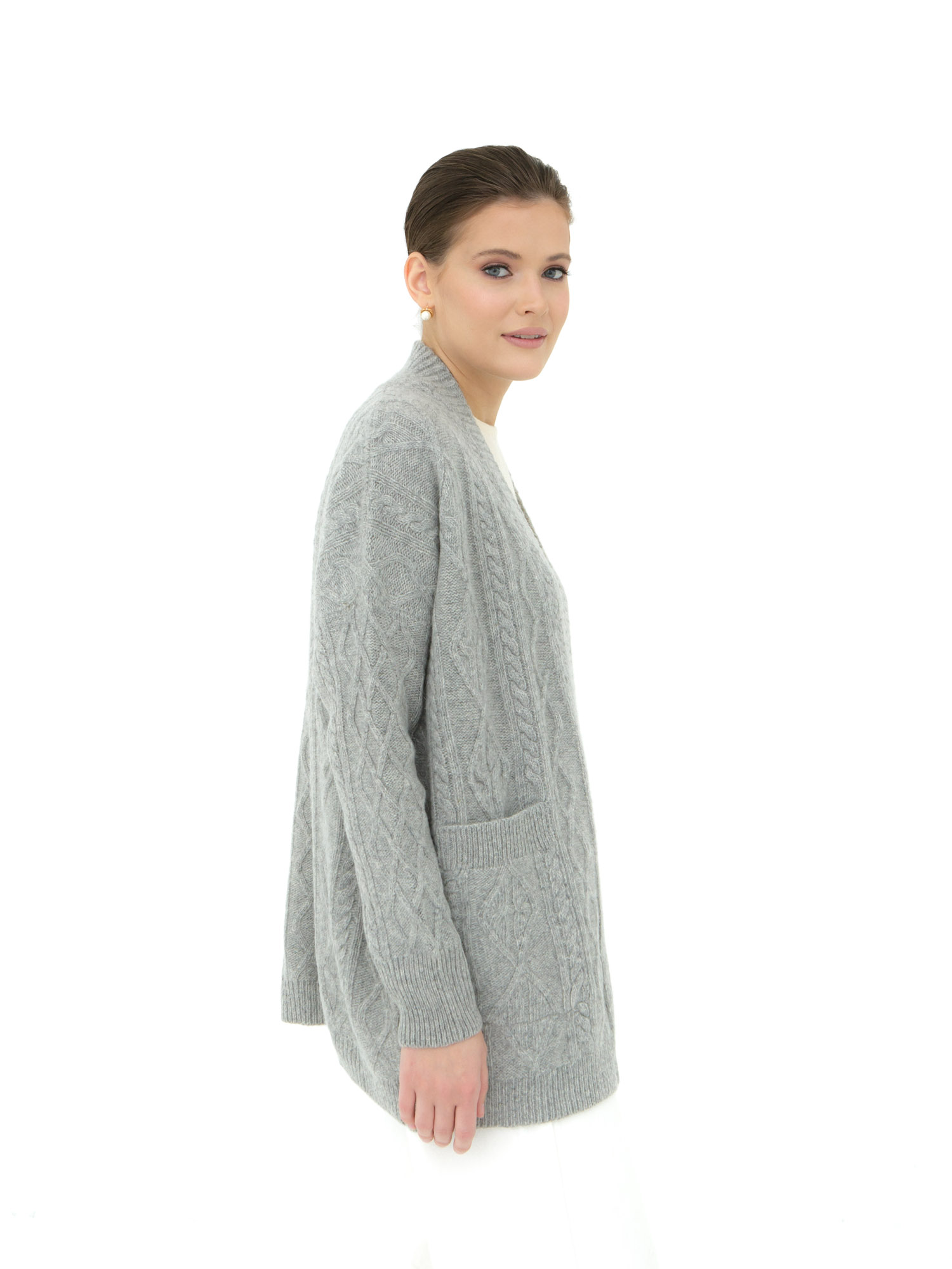Стильный и уютный серый шерстяной кардиган, который станет вашим незаменимым спутником в прохладные дни! Этот кардиган из 100% шерсти отличается длинным кроем, что обеспечивает дополнительное тепло и комфорт. Элегантный и универсальный дизайн идеально подходит для создания многослойных образов, легко комбинируется как с повседневной, так и с более формальной одеждой.